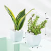 Bring home positivity and grace with this lovely plant combo. Presented in chic planters, this combo includes a jade plant and a snake plant. The snake plant has beautiful dark green leaves with yellow edges and can live without water for days. It is widely known to purify the air and remove toxins. The jade plant symbolizes good fortune, adding a touch of elegance. You can place these plants in your living room, bedroom, balcony, or work desk to give your space a chic look. Give these plants as gifts to your loved ones on special occasions, making their celebrations meaningful.
