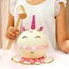Punch the Pinata and reveal a tasty surprise of this Unicorn Theme Chocolate Pinata Ball Cake in 500 gram It looks gorgeous and tastes delicious thanks to its all-chocolate flavor. The white chocolatey shell breaks & spreads like confetti. Comes with a cutesy tag & lovely hammer.
