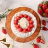 Indulge in a timeless expression of elegance with this classic white forest strawberry cake, thoughtfully crafted for refined celebrations. A smooth, white cream frosting with subtle horizontal ridges on the sides transforms the cake into a masterpiece of texture and taste. The top is adorned with a decorative ring of lush, fresh strawberries encircling a delicate centre of white chocolate shavings. Resting on a rustic wooden platter, this artisanal creation shapes a warm, celebratory ambience, perfect for birthdays, anniversaries, and sophisticated tea parties that feel truly special.