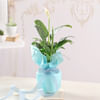 Health, prosperity and the gift of the green wrapped together in a macrame basket, ready to exude holistic healing and joy - Peacelily Plant, small wooden box with almond brittle chocolates, roasted almonds, classic cashews, haworthia succulent in white planter and a mini dried flower bouquet.